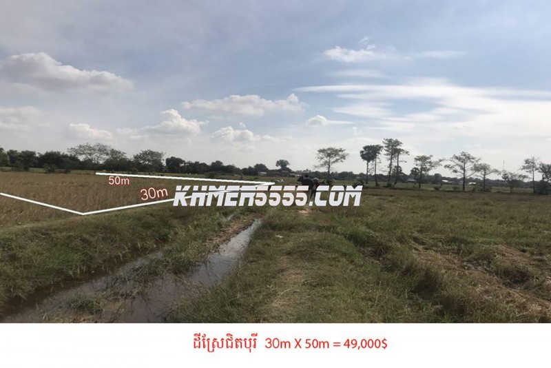 ដីស្រែក្បាលជាប់ផ្លូវ 30m X50m (ប្លង់រឹងទំហំ 1495m2)