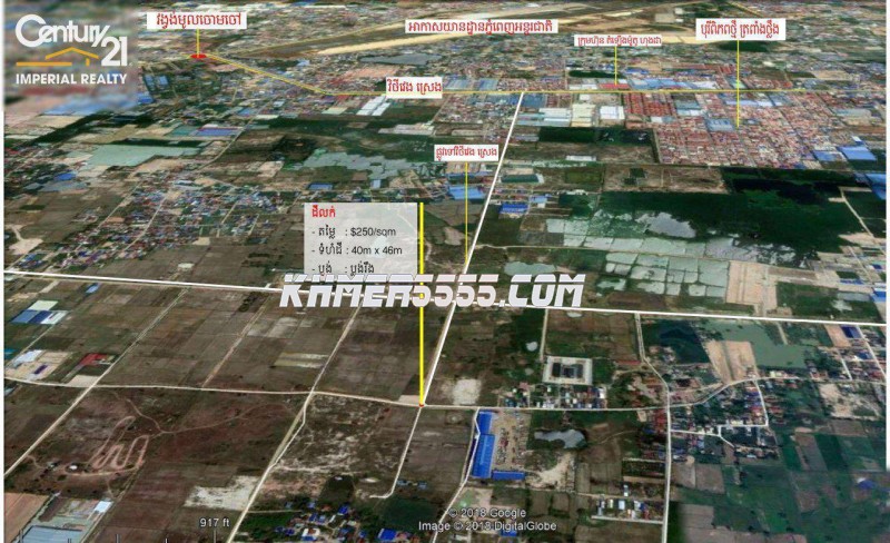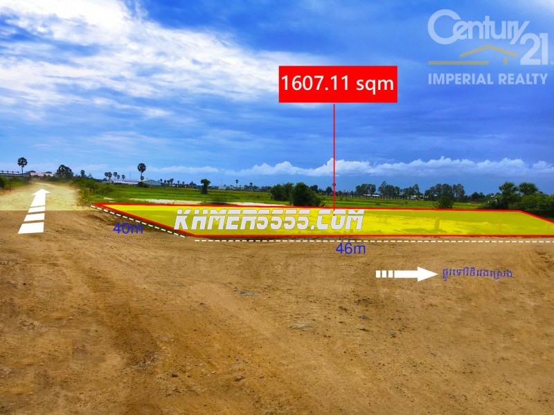 ដីលក់ទីតាំងល្អណាស់ រាងដីស្អាតណាស់ ជាប់ផ្លូវប្រលាយ32mផ្លូវទៅព្រលានយន្តហោះថ្មី
