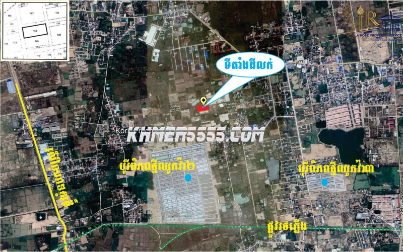 ដីលក់ទីតាំងល្អណាស់ រាងដីស្អាតណាស់ ជាប់ផ្លូវប្រលាយ32mផ្លូវទៅព្រលានយន្តហោះថ្មី