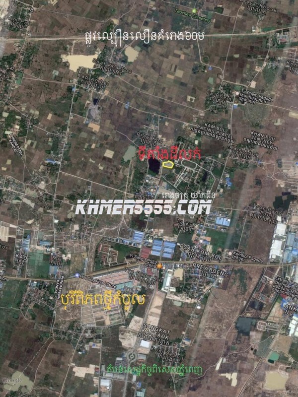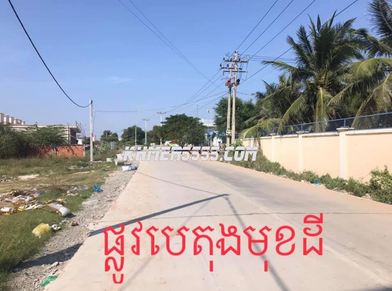 ដីលក់ទីតាំងល្អណាស់ រាងដីស្អាតណាស់ ជាប់ផ្លូវប្រលាយ32mផ្លូវទៅព្រលានយន្តហោះថ្មី