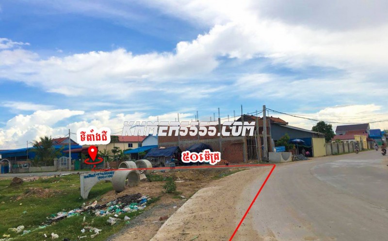 ដីលក់កែងផ្លូវណឹម ម៉េង ជាប់ផ្លូវទំហំ50m
