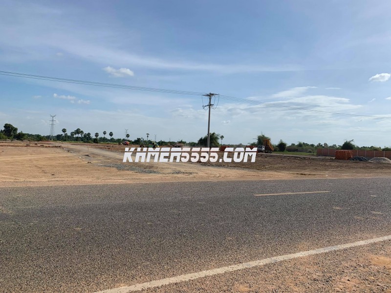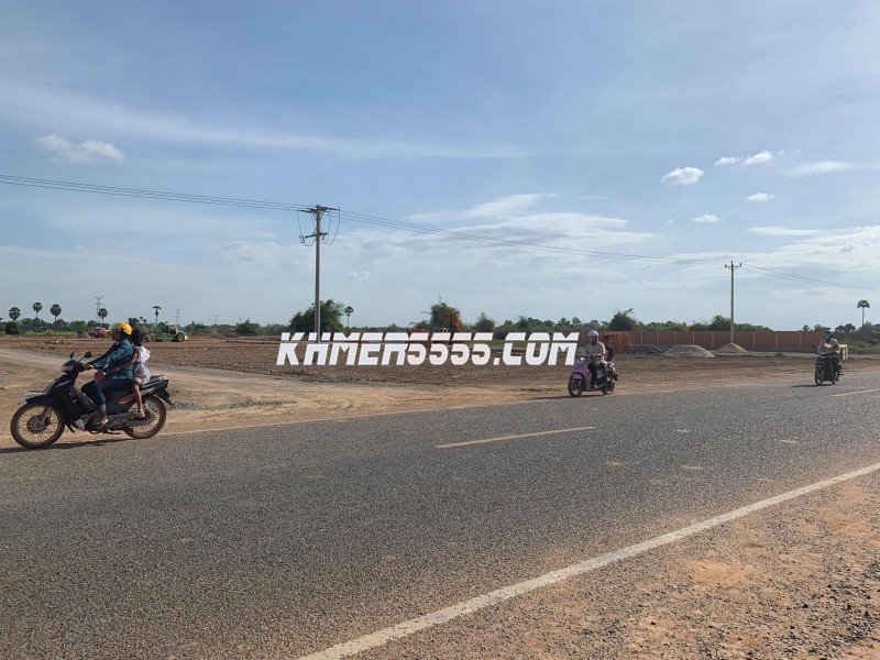 ដីលក់ទីតាំងល្អណាស់ រាងដីស្អាតណាស់ ជាប់ផ្លូវប្រលាយ32mផ្លូវទៅព្រលានយន្តហោះថ្មី