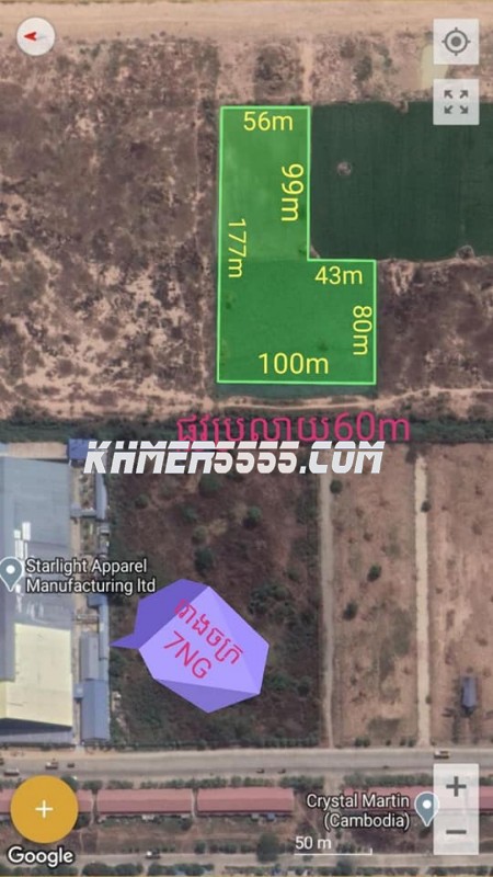 ដីលក់ទីតាំងល្អណាស់ រាងដីក៏ស្អាត ជាប់ផ្លូវប្រលាយ32mផ្លូវទៅព្រលានយន្តហោះថ្មី